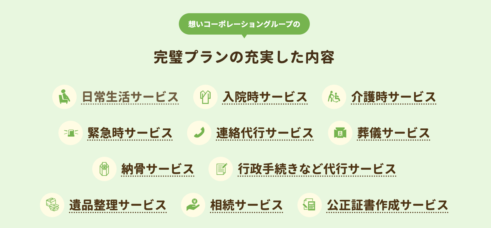 | 生前の生活支援 | ⚪︎ ※完璧プランの場合 |